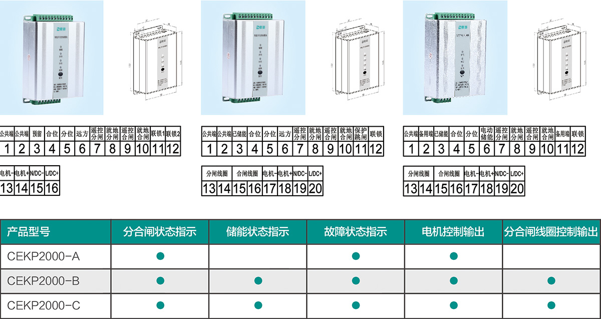 CEKP系列智能開關控制模塊適用于SF6氣體絕緣環網柜、固體絕緣環網柜、環保氣體柜等小型化開關設備。
